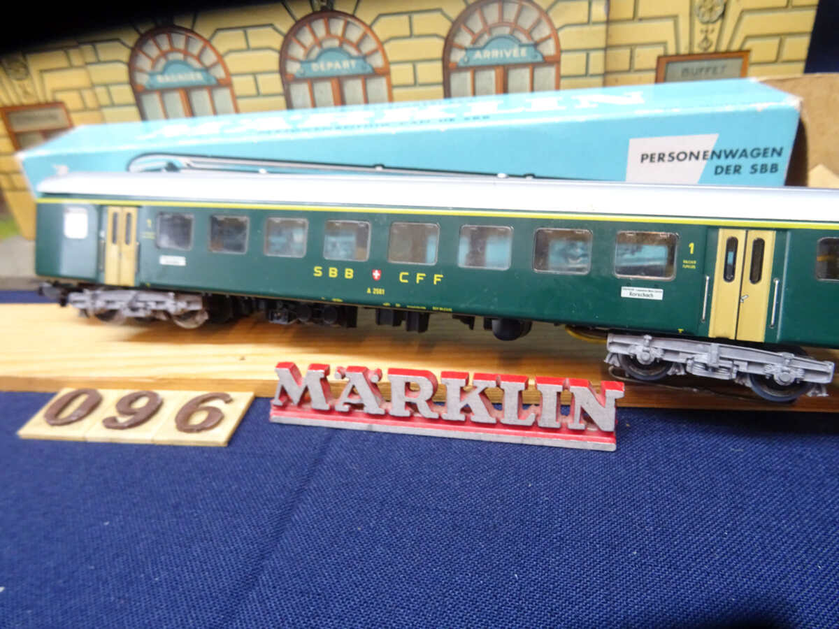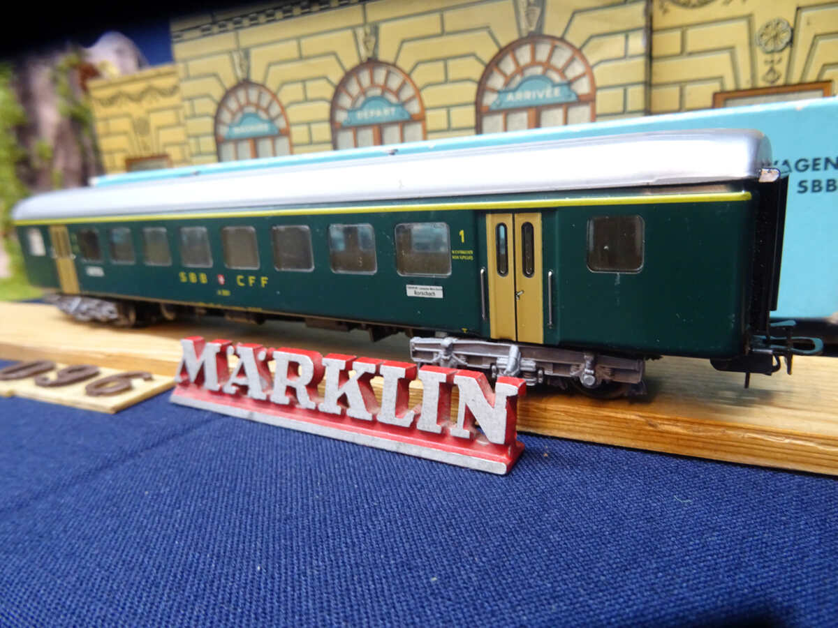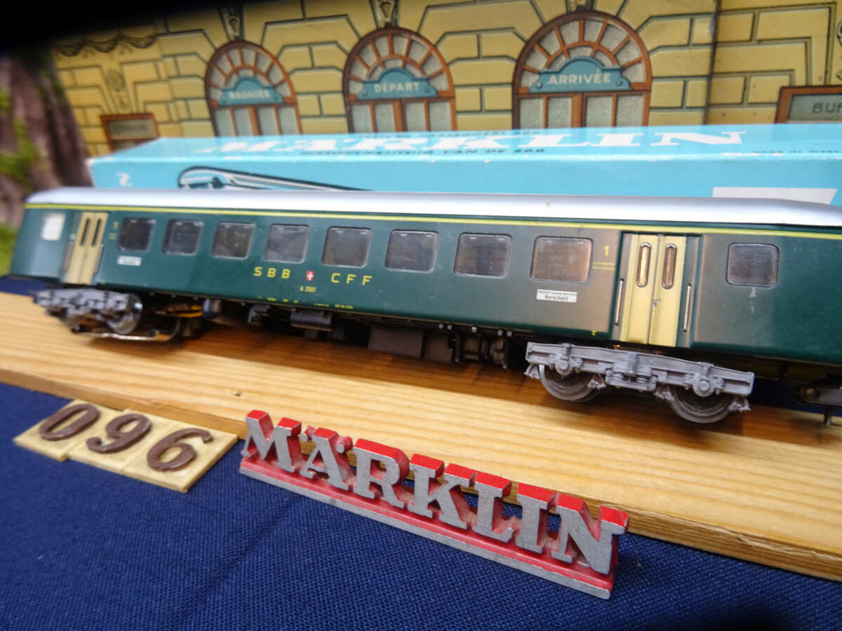 Met opschrift SBB-CFF, 1e class personen rijtuig.