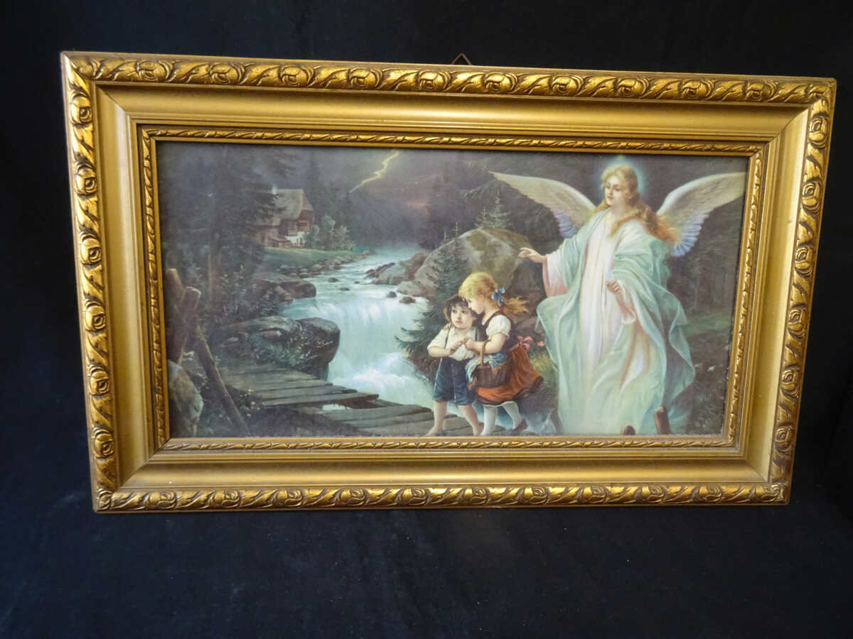 Rechthoekig lijst met afbeelding van een Engel die over kinderen waakt.