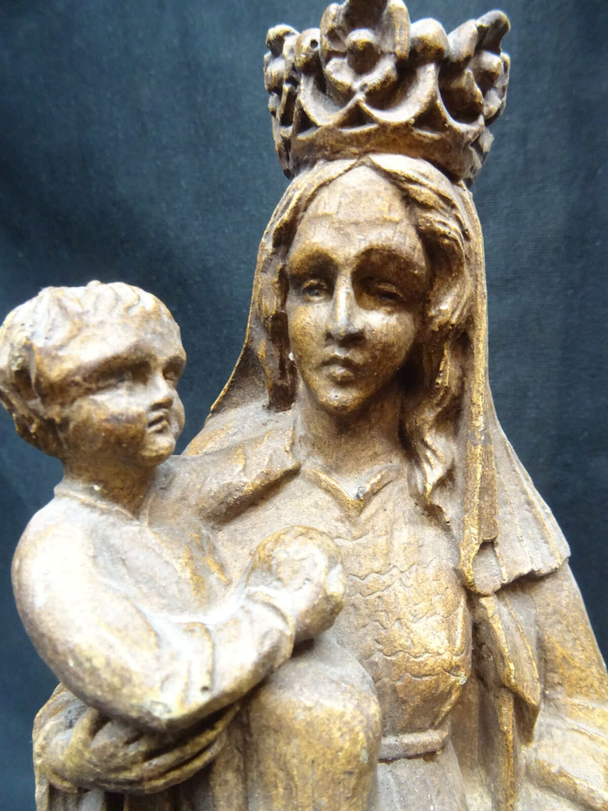Onder bij haar voeten de ligt leeuw van Vlaanderen.