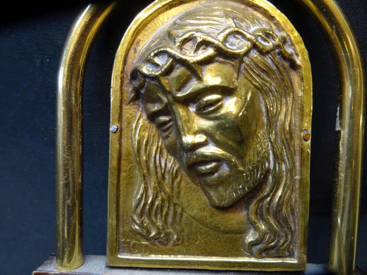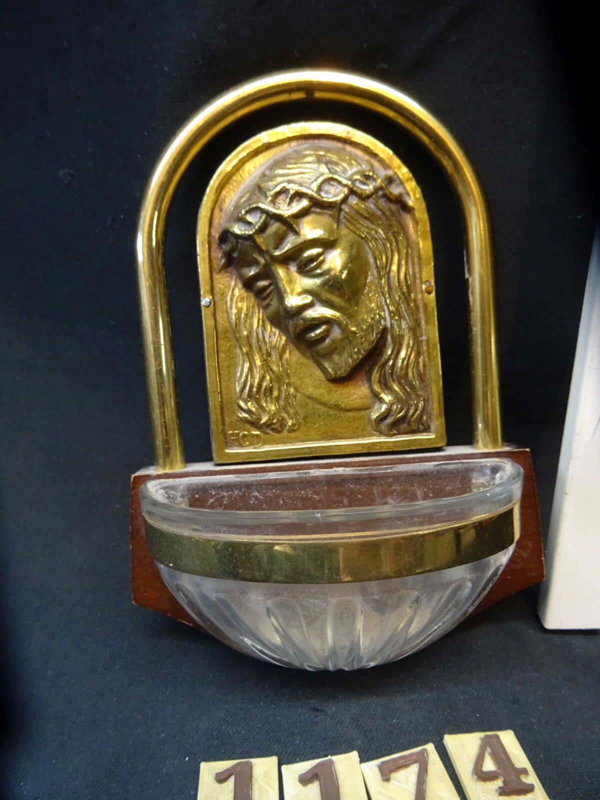 1174=Wijwaterbakje met afbeelding van Christus.