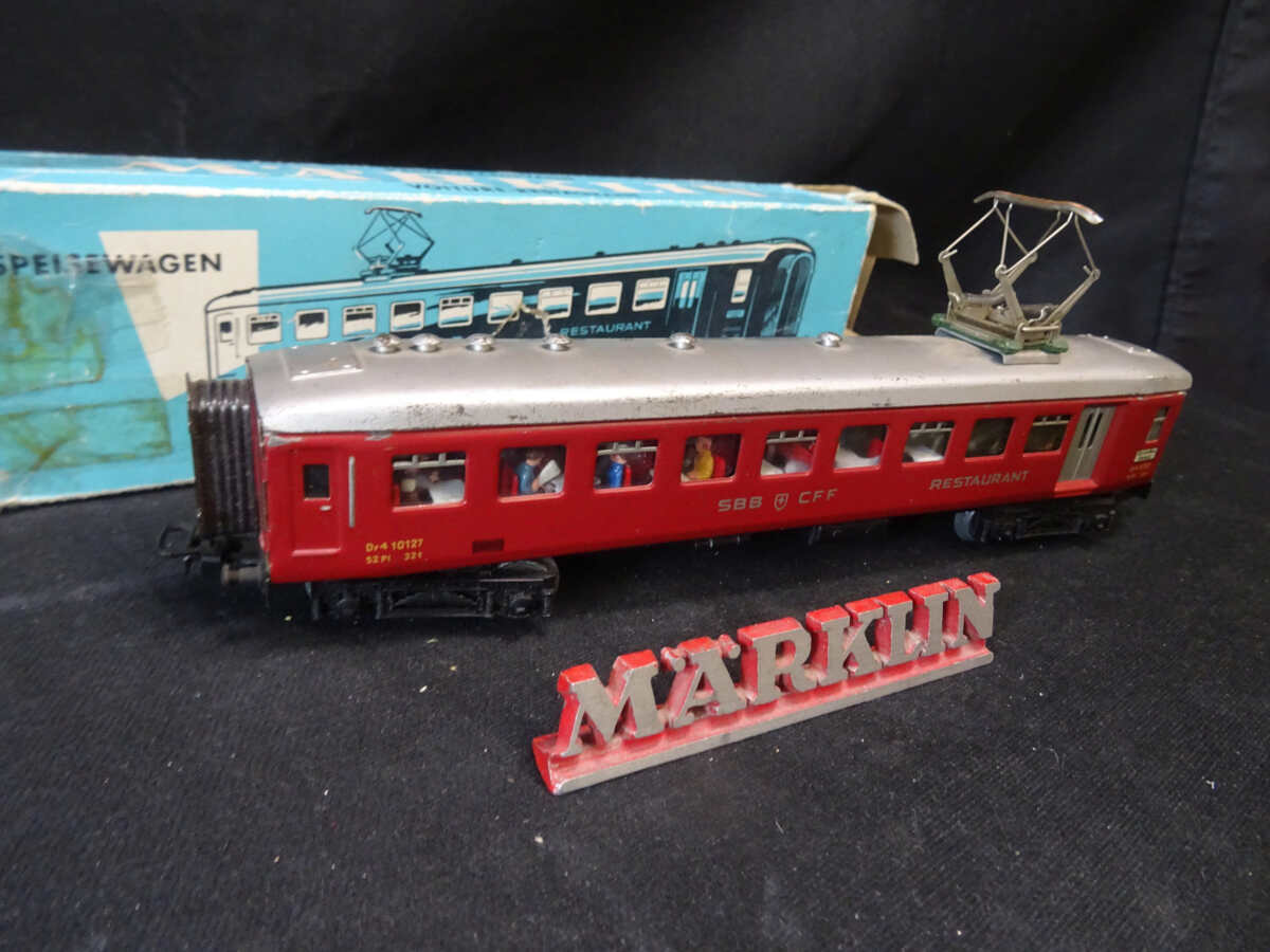 Met opschrift SPEISEWAGEN RESTAURANT SBB-CFF.
