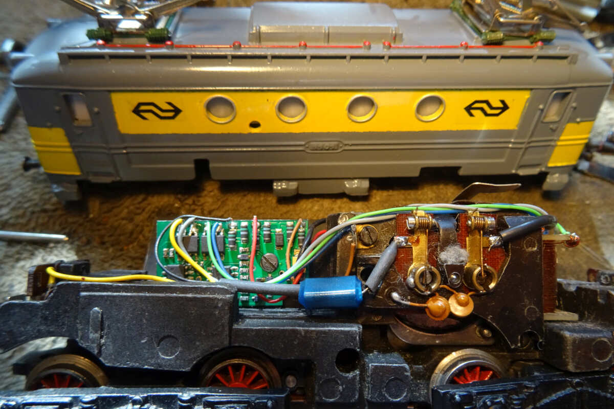 Rijdt ook op bovenleiding, metalen tandwielen.