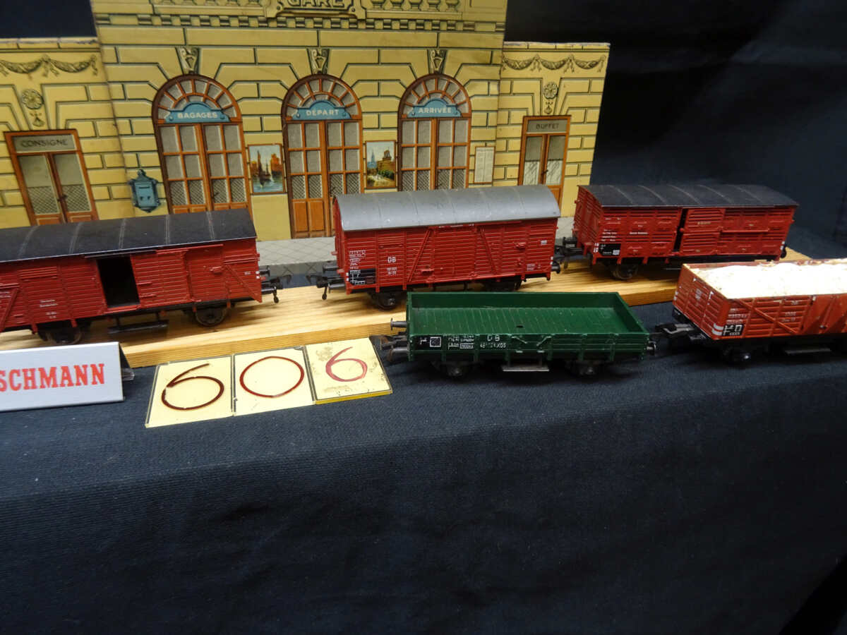 een kavel met diverse goederenwagens.