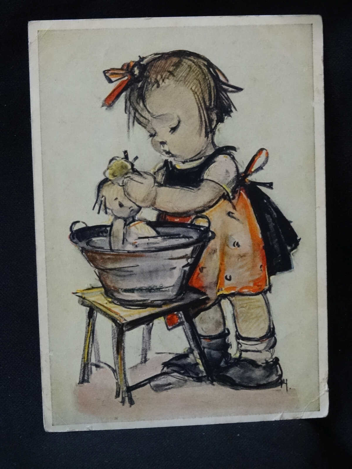 7057ADIV=Een serie van 3 originele HUMMEL briefkaarten.