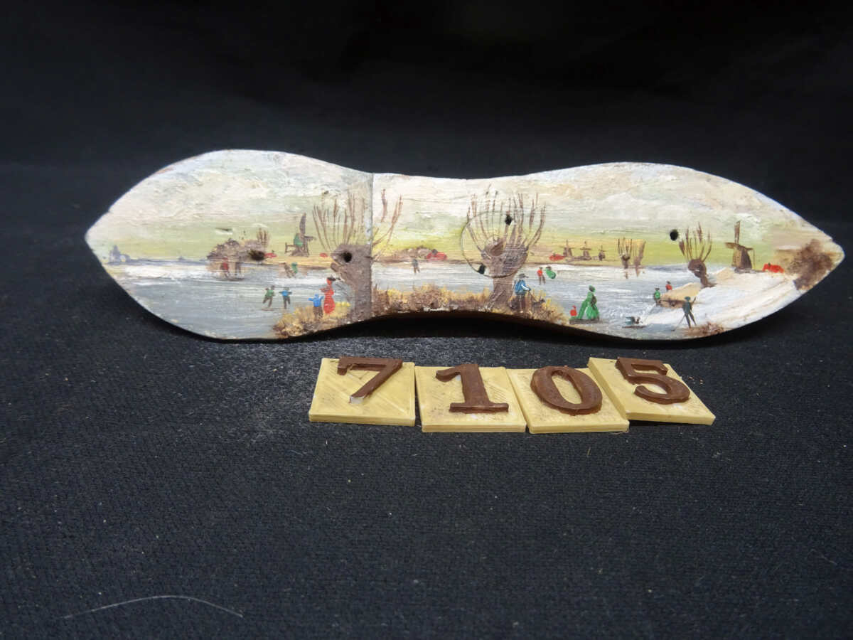 7105200=Oude handbeschilderde schaats.