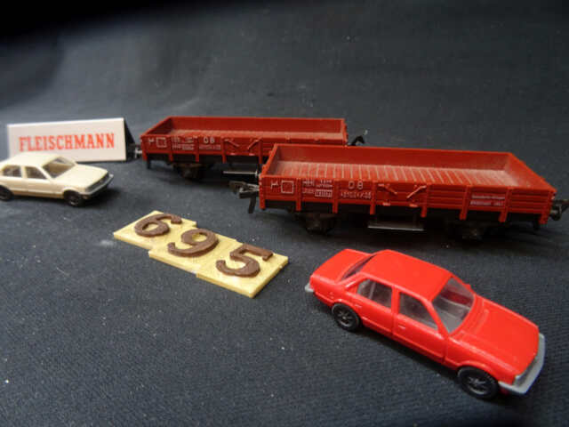 068=Marklin 3 lage vloer bakwagens, grijs.